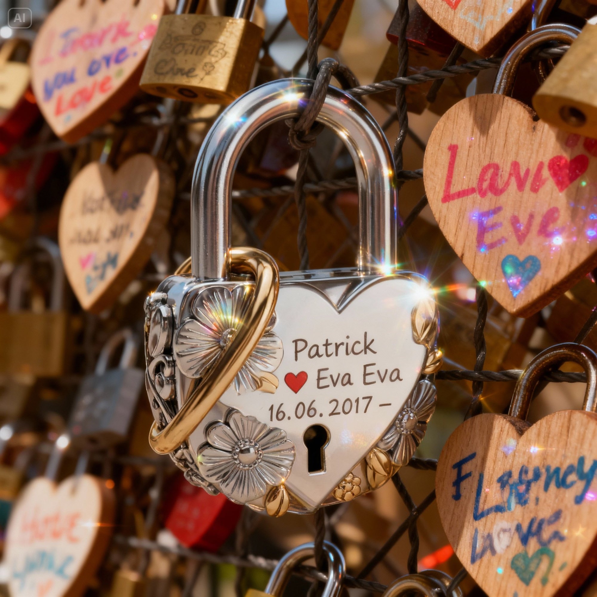 We will engrave your name on a padlock along with a heart and a wish/prayer, then hang it at the location you choose. We have 15 famous locations around the world. After that, we will send you a photo, a link to the padlock’s pin on Google Earth, and a certificate of ownership for your padlock.