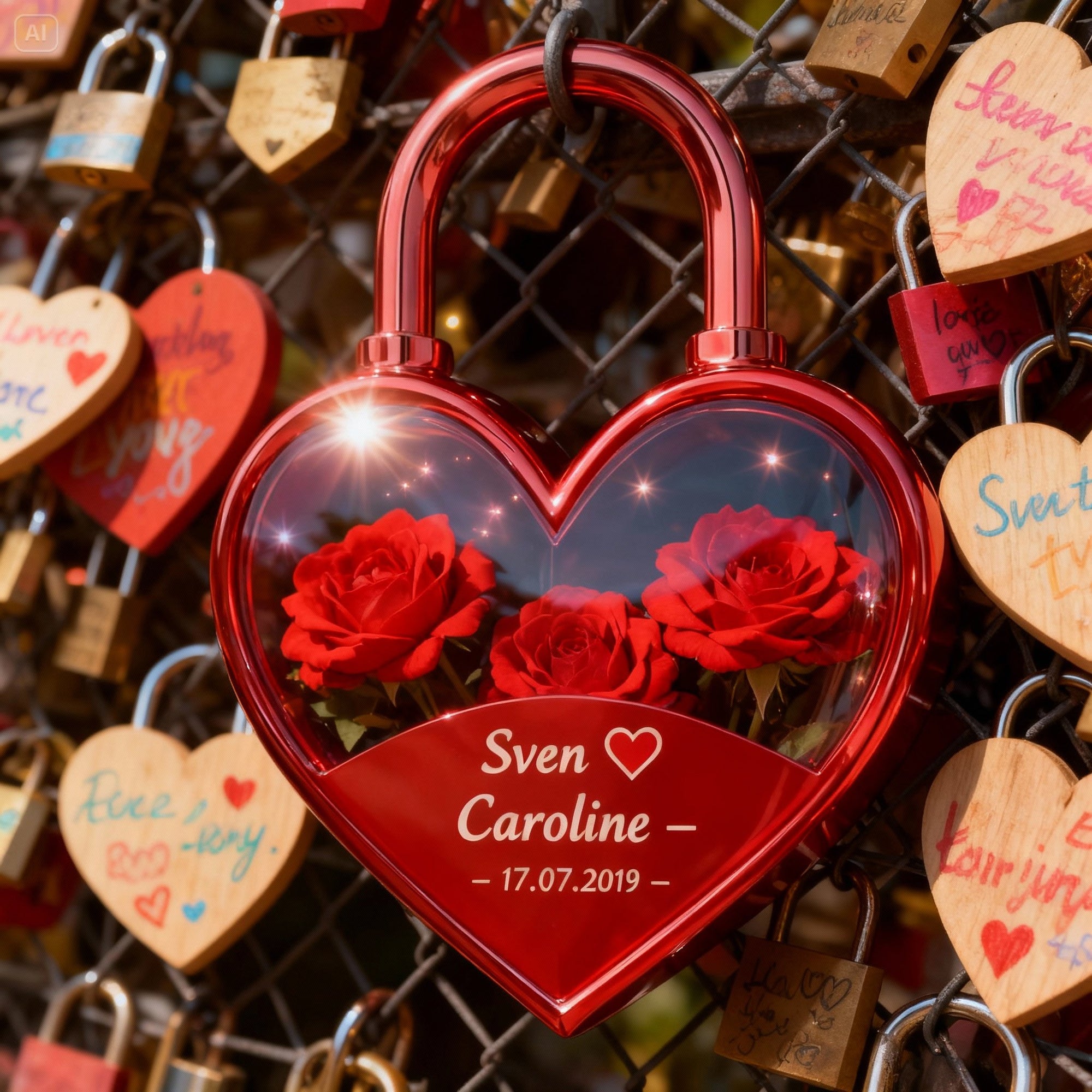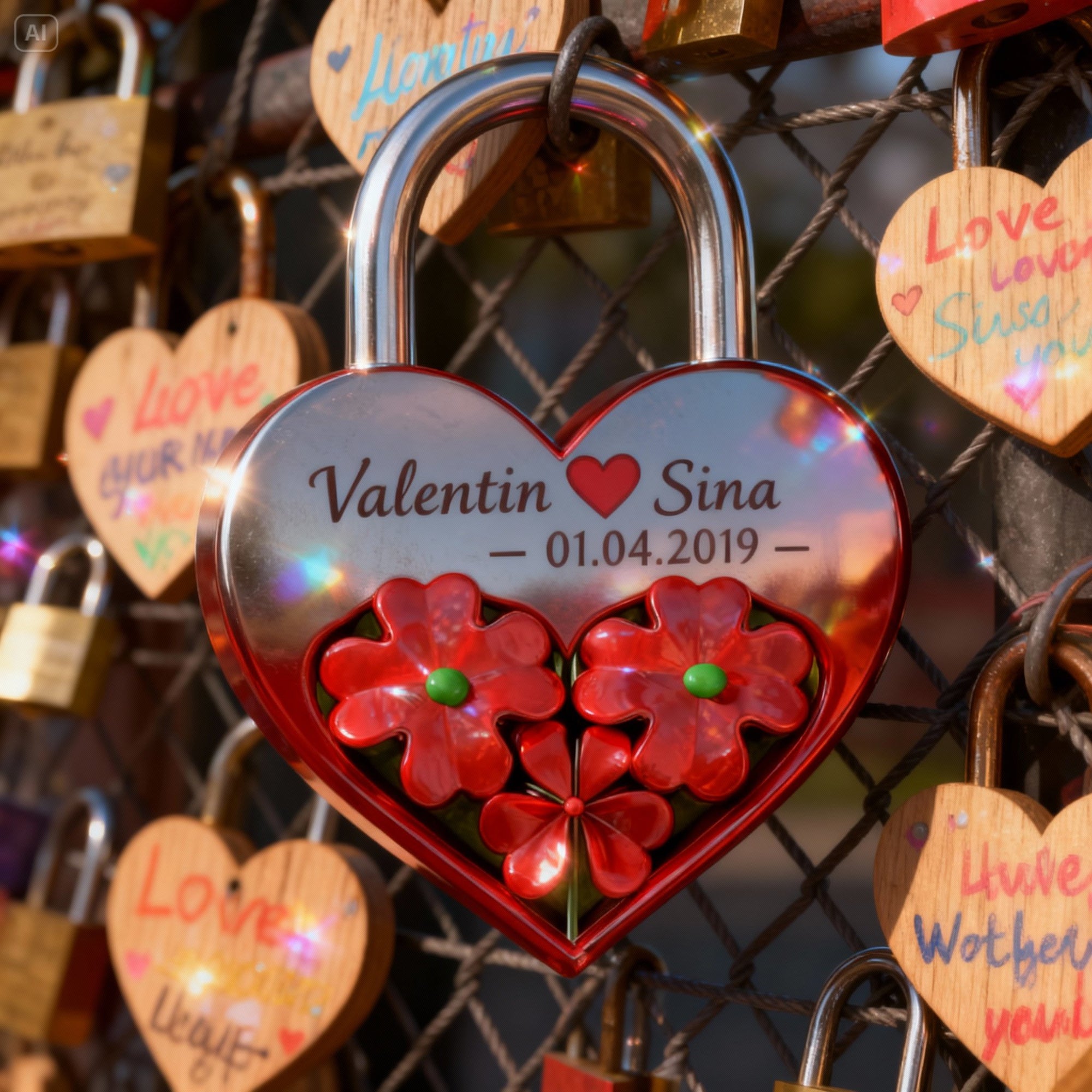 💡Personalize your love lock with custom engravings of names and photos. We also include a wooden plaque for your heartfelt wishes, ensuring you create a truly unique keepsake. This isn't just for names or a brief message; we're here to craft exactly what you ask for and envision.